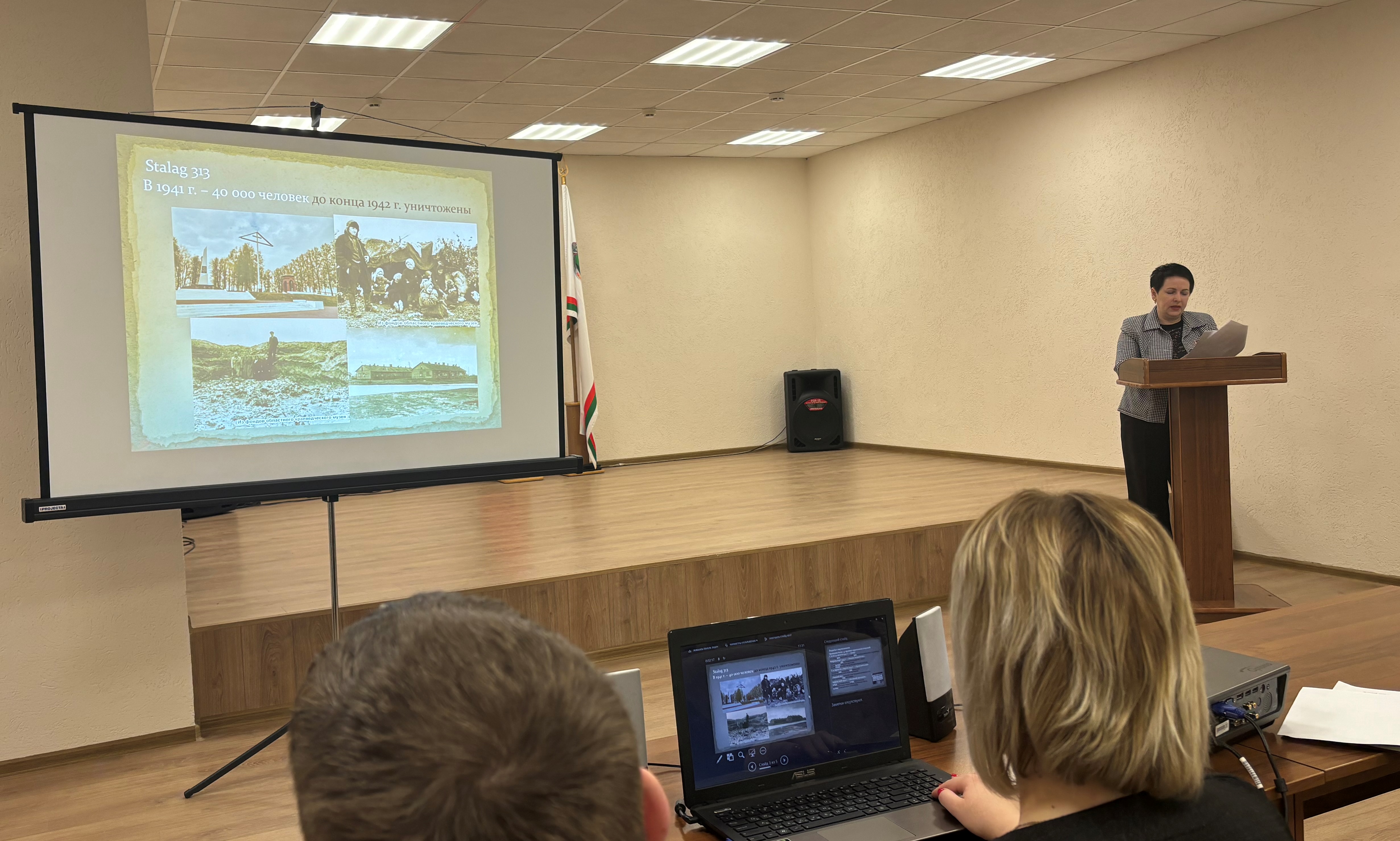 В рамках семинара с сообщением о жертвах преступлений нацистов и их пособников против мирного населения на оккупированной территории Витебской области выступила заместитель начальника Главного управления Гуляева Е.Ю.