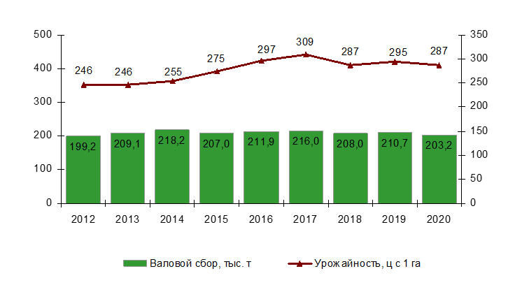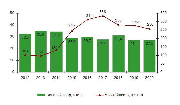 Валовой сбор и урожайность овощей